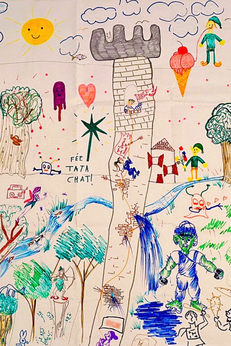 Cette activité permet de rassembler toute la famille autour d’une activité créative. L’idée est que toute la famille se retrouve autour d’un même dessin et laisse parler son imagination. Tout le monde peut participer à partir du moment où l’on sait tenir un crayon, il n’y a pas d’âge pour devenir artiste 😉